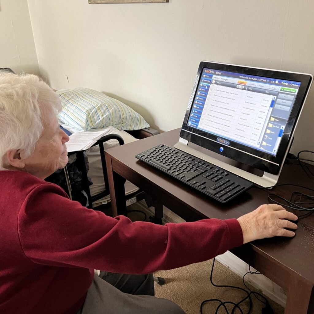 We provide our clients with a senior friendly tablet or computer, train them on it,